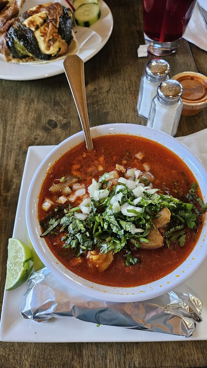Real authentic mexican food. Taste like home cooked food. I have been here a couple of times and they never disappoint. Must try restaurant. The soup is called pancita, the platter chilaquiles with steak and eggs.